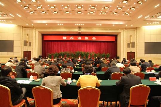 10月19日,全国政协副主席、中共中央统战部部长杜青林向各民主党派中央、全国工商联领导人和无党派人士通报中共十七届六中全会精神。本网记者 胡晓峰摄
