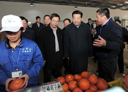 这是2月16日,贾庆林在昌平小汤山特菜基地实地察看现代农业发展情况。新华社记者 马占成 摄