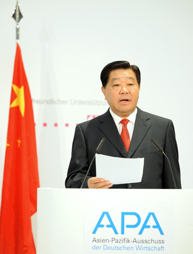 11月3日,全国政协主席贾庆林在柏林出席中德企业合作论坛,并发表题为《携手共创中德经贸合作的美好未来》的演讲。新华社记者 刘建生 摄