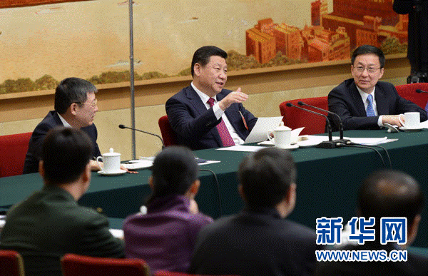 3月9日,中共中央总书记、国家主席、中央军委主席习近平参加十二届全国人大二次会议安徽代表团的审议。 新华社记者李学仁摄
