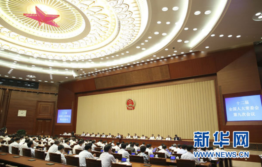 6月27日,十二届全国人大常委会第九次会议在北京人民大会堂闭幕。张德江委员长主持会议。新华社记者 丁林 摄