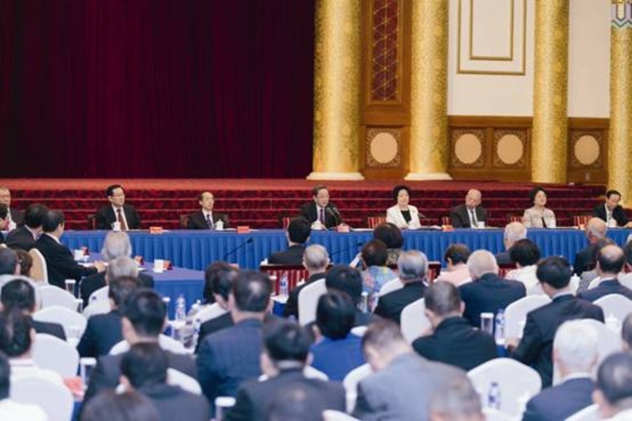 著名爱国将领张治中将军之女、美国华人社团联合会荣誉主席张素久,保台志士丘逢甲侄孙女、台湾抗日志士亲属协进会理事长丘秀芷,全国人大常委、澳门立法会主席贺一诚,香港政协青年联会会长蔡加讚等在座谈会上发言。