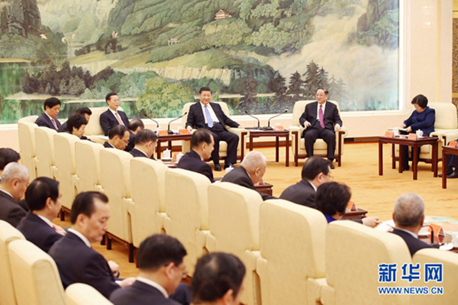 习近平强调,要着力服务全面建成小康社会、全面深化改革、全面依法治国、全面从严治党的战略布局。“四个全面”的战略布局是从我国发展现实需要中得出来的,从人民群众的热切期待中得出来的,也是为推动解决我们面临的突出矛盾和问题提出来的。统一战线有自己的优势,应该也完全能够为落实“四个全面”的战略布局作出贡献。睿智之言、务实之策根植于人民。希望同志们深入开展专题调研,提出更多建设性、可操作的意见和建议。