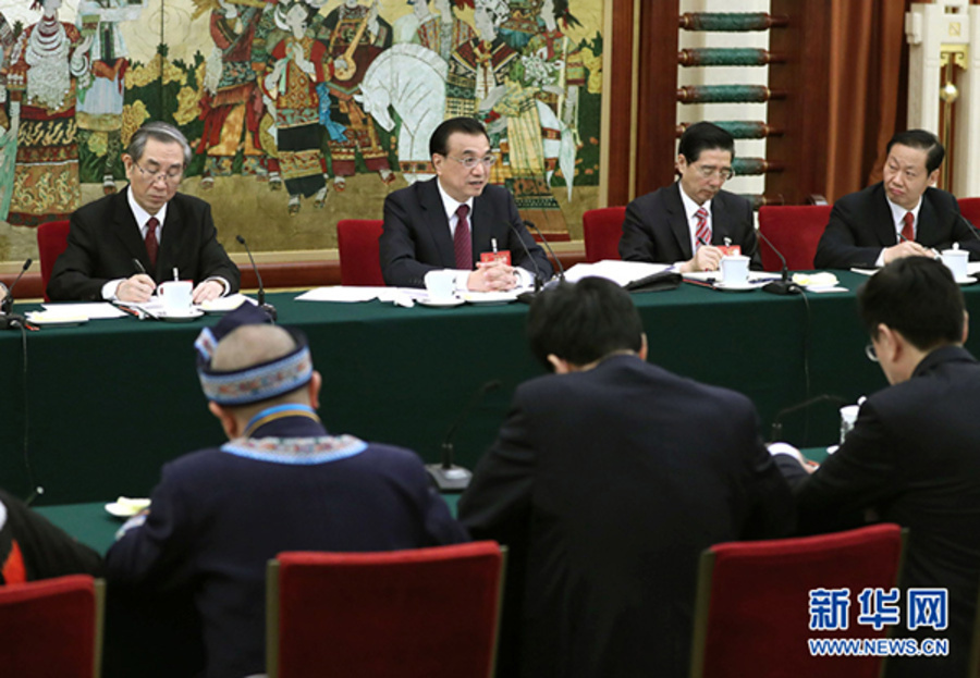 3月8日,中共中央政治局常委、国务院总理李克强参加十二届全国人大五次会议广西代表团的审议。新华社记者丁林摄