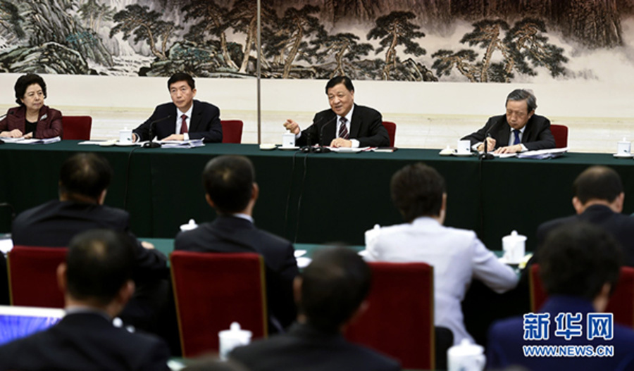 3月8日,中共中央政治局常委、中央书记处书记刘云山参加十二届全国人大五次会议山西代表团的审议。新华社记者燕雁摄