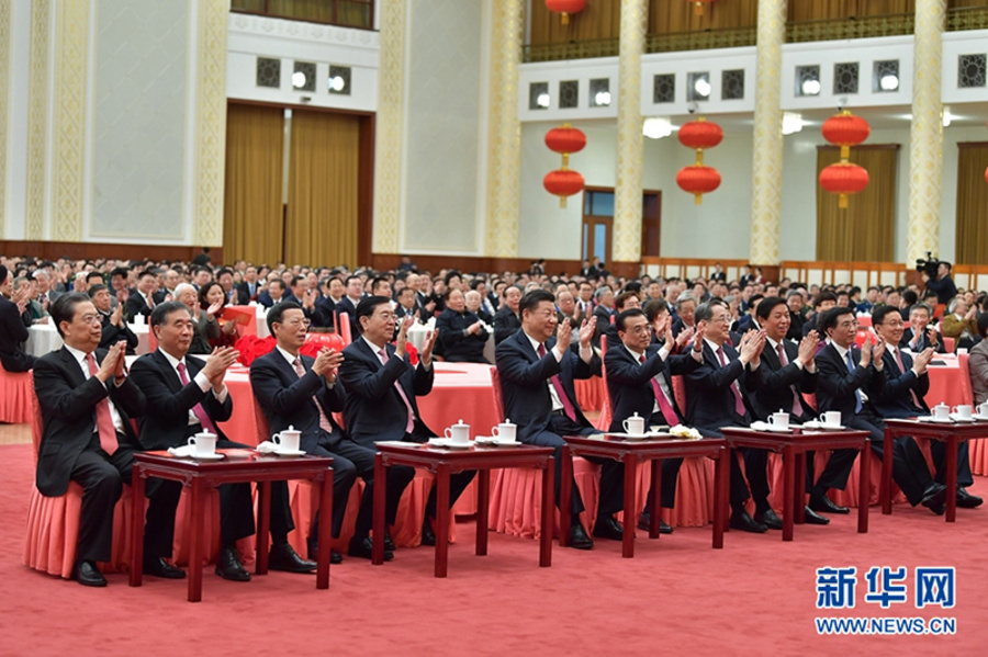 2月14日,中共中央、国务院在北京人民大会堂举行2018年春节团拜会。党和国家领导人习近平、李克强、张德江、俞正声、张高丽、栗战书、汪洋、王沪宁、赵乐际、韩正等同首都各界人士欢聚一堂,共迎新春。新华社记者李涛摄