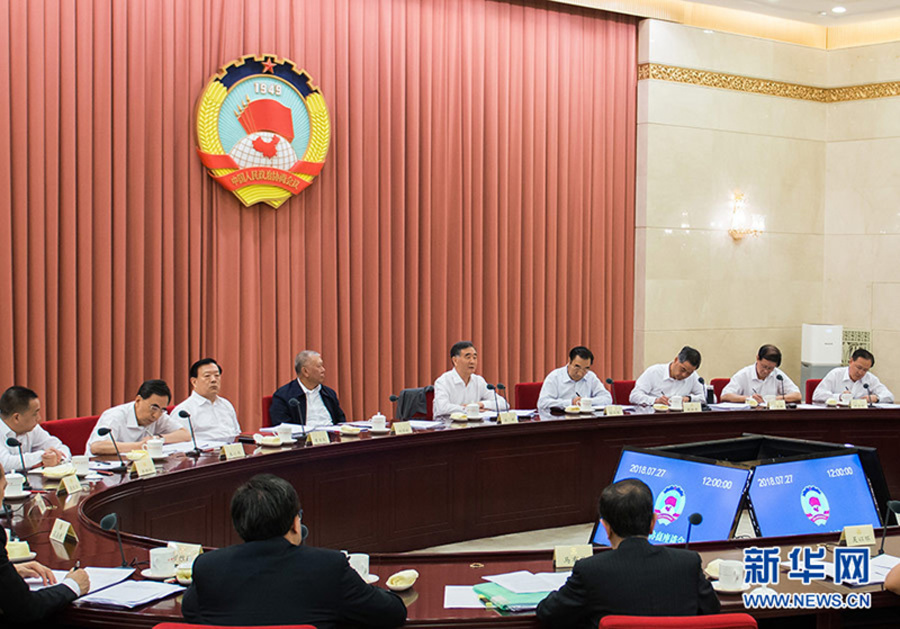 7月27日,十三届全国政协第七次双周协商座谈会在北京召开,中共中央政治局常委、全国政协主席汪洋主持会议并讲话。 新华社记者 翟健岚 摄