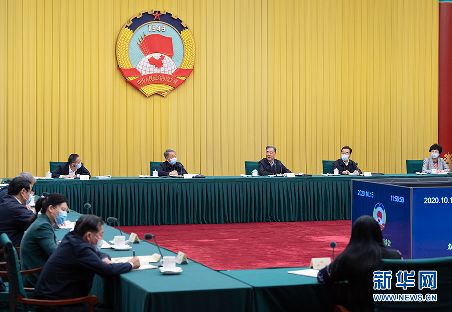 10月15日,十三届全国政协第41次双周协商座谈会在北京召开。中共中央政治局常委、全国政协主席汪洋主持会议。 新华社记者 高洁 摄