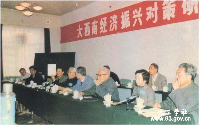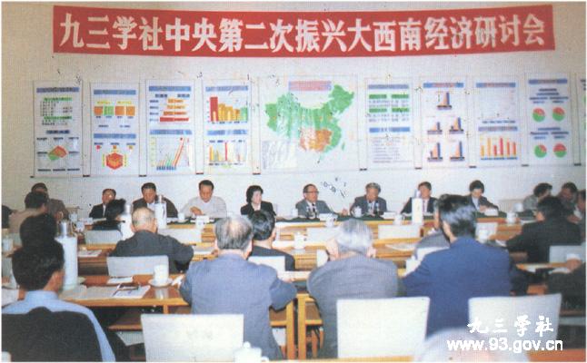1988年11月,九三学社中央与开发大西南战略研究协作中心,在北京联合召开振兴大西南经济对策研讨会,寻求振兴西南经济的根本途径。