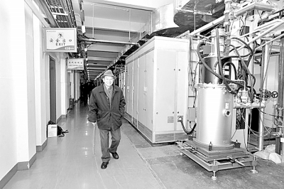 2012年2月,谢家麟院士在北京正负电子对撞机束调管长廊。(资料图片)