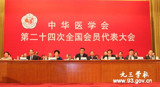 4月24日,中华医学会第24次全国会员代表大会在北京人民大会堂开幕。中共中央政治局常委、国务院副总理李克强,全国人大常委会副委员长、九三学社中央主席韩启德,全国政协副主席、九三学社中央副主席王志珍等领导同志出席开幕式。