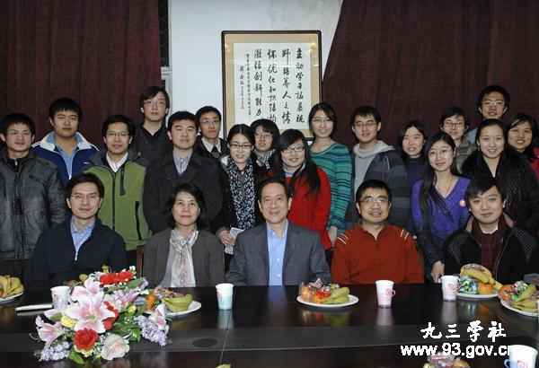 2010年12月30日下午,全国人大常委会副委员长、九三学社中央主席、北大医学部主任韩启德院士带着新年的问候与祝福来到北大医学部团委,看望了医学部团员青年代表并与大家亲切座谈。北京大学常务副校长、医学部常务副主任柯杨、医学部党委副书记李文胜、医学部两办主任肖渊也一同看望了同学。