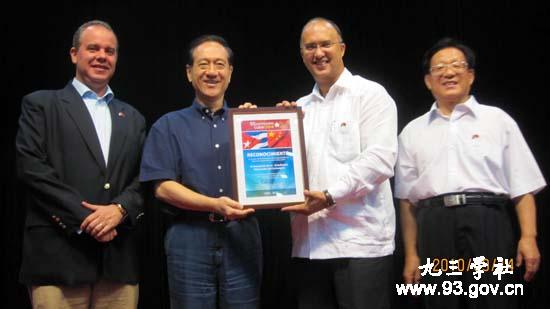 欧美同学会拉美分会常务副会长徐宜林在讲话中回顾了50年前卡斯特罗在哈瓦那革命广场百万人集会上宣布古巴与中国建交决定的情景。他说,古巴是第一个同新中国建交的拉美国家。建交50年来在两国领导人的亲自关心下,两国关系经受住了国际风云变幻的考验,中古友好已牢牢扎根于两国人民心中。特别是进入21世纪以来,两国关系进入全面发展时期。古巴是接受中国留学生最多的拉美国家这些留学生借助西班牙语同古巴,同拉美各国开展各个领域的交流与合作,为促进中国人民与古巴人民、以及拉美各国人民友好合作关系的不断发展做出了积极努力。他说,中古两国都是社会主义国家,都在根据各自的国情建设本国特色的社会主义,共同的理想把我们紧紧联系在一起。他祝愿古巴人民取得新的更大成就。