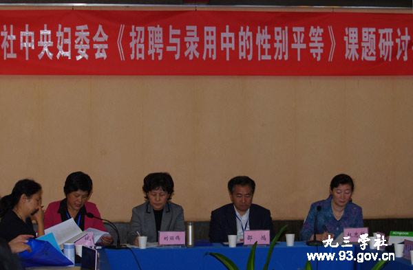 会上,九三学社中央妇委会委员、陕西省委专职副主委刘斌将课题立项、课题小组成立、课题进展情况以及形成《职业招聘中禁止性别歧视的法律政策研究报告》(征求意见稿)的全部工作过程作了汇报。九三学社陕西省委社会与法制委员会主任、西北工业大学妇女发展与权益研究中心主任、西北工业大学人文经法学院郭慧敏教授代表课题组结合《职业招聘中禁止性别歧视的法律政策研究报告》(征求意见稿),从国际国内妇女权益保障方面的现状入手,通过调查情况分析、调研结果分析、对策与建议三个主要方面对调研报告进行总体阐述,提出本报告旨在建议政府和妇联组织作法律和文化的多重动员,以保证妇女权利的实现。课题组成员刘咏芳就课题调查数据及分析工作做了详细说明。