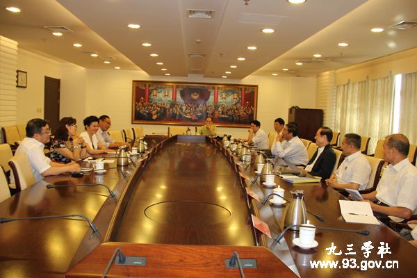 九三学社中央办公厅副主任刘建华、组织部副部长唐可立、宣传部部长穆建民、社会服务部部长苟红旗、研究室主任岳庆平会见时在座。(侯艳华)