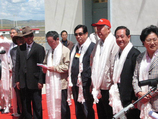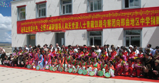 列车进入西藏自治区境内以后,考察团一行考察了那曲火车站并向那曲地区中学捐赠了价值12万元的电脑。