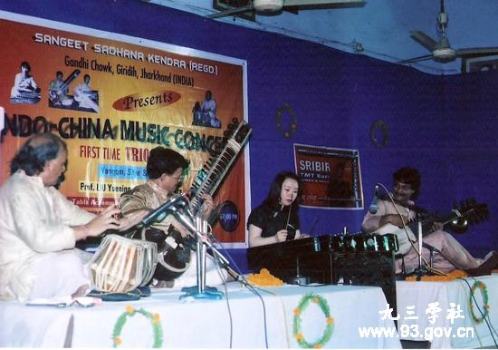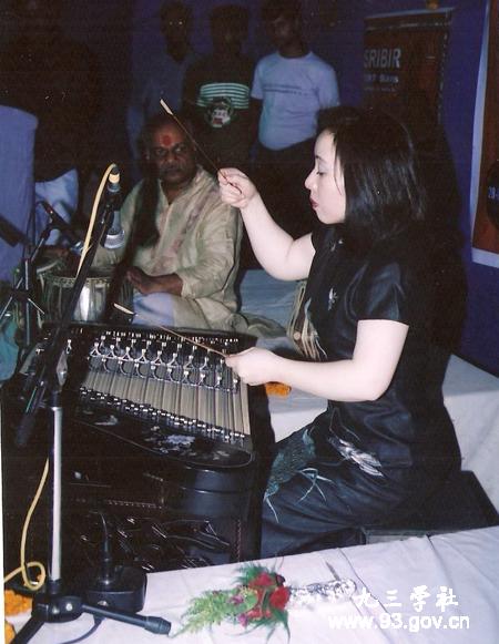 九三学社中央委员、中国著名扬琴演奏家、中央音乐学院教授刘月宁5月28日晚在印度贾坎德邦与印度著名民乐演奏组合克迪安兄弟二人进行了名为“印度•中国”的三重奏音乐会,首次将扬琴悠扬的旋律与印度传统弹拨乐器西塔尔琴和萨罗德琴的迷幻旋律融合,以印度古典民乐“即兴问答”的形式展现给听众。