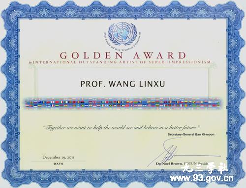 联合国友好协会理事会主席布朗代表活动主办方在论坛上表示,“在世界各国都在追求高速发展的今天,倡导世界和平、人类健康以及文化的发展具有深刻意义。人们只有在一个和平、友好与和谐的世界环境下,才能有效提高自身健康水平,并发展丰富多彩的文化艺术。作为联合国非政府组织,表彰一批在促进世界和平、人类健康与文化发展方面做出突出贡献的杰出人士,有助于提高人们对和平、健康和文化发展事业的重视,有助于帮助人们加深世界进步和可持续发展之间关系的认识,也有助于促进世界在多元文化艺术创新上取得卓有成效的发展。王林旭教授自1995年至今已是联合国三任秘书长授予世界“和平使者”称号的艺术家,他在近20年时间里始终积极倡导人文关怀、自然与社会的发展以及科学与艺术的创新。在广泛研修世界当代艺术成果的基础之上,他积多年艺术探索实践创造出了超越时空、超越形态和超越语言的“超象”艺术,找到了一种可以使世界不同文化和谐共生的艺术语言。这一艺术符合当代世界的文化语境,具有强劲的生命力和广阔的发展前景。今年四月和八月,他的超象艺术在纽约和联合国的成功发布和展出,让人们看到了一条世界艺术共享的道路,也启发了人们在世界文化交流的走向和前景上的更多思考。他荣膺“世界卓越艺术家金奖”和“年度慈善家人道主义贡献奖”是当之无愧的。”