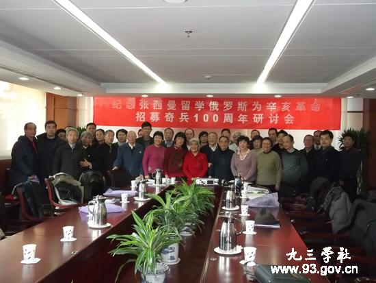 12月18日上午,由九三学社中央研究室、欧美同学会留苏分会、中国俄罗斯友好协会联合主办的“纪念张西曼留学俄罗斯为辛亥革命招募骑兵100周年研讨会”在欧美同学会第三会议室召开。全国政协原副秘书长、民革中央原副主席李赣骝出席研讨会。九三学社中央、欧美同学会、中国俄罗斯友好协会、中国社会科学院世界史所和近代史所、北京大学、中共中央党校、中共北京市委党史研究室、中国军事科学院、中国抗日战争纪念馆、黑龙江社会科学院、齐齐哈尔大学等单位共50余位专家学者和张西曼先生的女儿张小曼参加了研讨会。研讨会由欧美同学会留苏分会副会长贾梦秋主持。