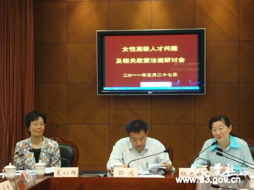 上海市妇联副主席黎荣介绍了近年来市妇联就上海高层次女性人才进行的调研情况。市人保局副局长毛大立介绍了上海市女性人才结构和女性人才建设发展情况。