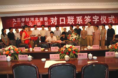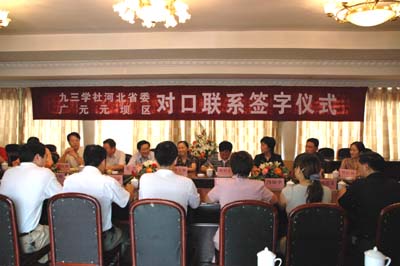 在“九广合作”20周年纪念活动期间,九三学社河北省委与广元市元坝区签定了对口合作协议。贺铿副主席出席合作签字仪式并讲话。活动期间,九三学社河北省委组织专家赴广元免费为贫困家庭的50例白内障患者作了复明手术。这一善举受到群众热烈欢迎。一位重见光明的老大爷激动地拉着医生的手久久不愿松开,连声说“感谢共产党、感谢九三学社,我们见到光明了”。