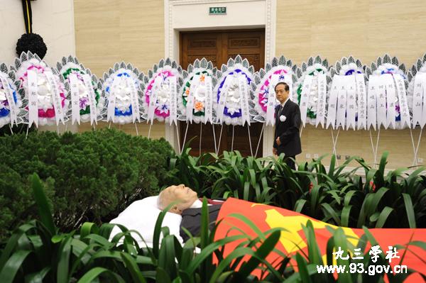3月9日,吴阶平同志遗体在北京八宝山革命公墓火化。这是全国人大常委会副委员长、九三学社中央主席韩启德送别吴老。新华社记者 马占成摄