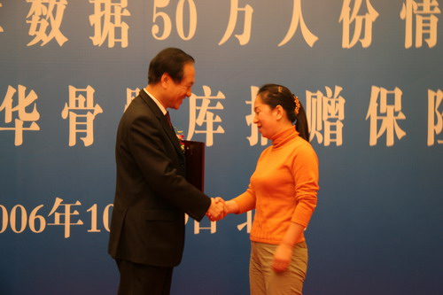 会上,中国红十字会会长彭珮云向第500例捐献者,来自山西的王阔颁发了“造血干细胞捐献者荣誉证书”。中华骨髓库与中国平安公司签署了2007年至2010年捐赠保险续签协议;聘请中国短道速滑冬奥冠军杨扬为“爱心大使”,演艺界明星宋佳为“形象代言人”。