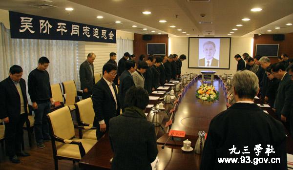 与会人员首先向吴老遗像肃立默哀,悼念这位深受人们爱戴和敬仰的著名医学科学家和社会活动家、九三学社的杰出领导人。
