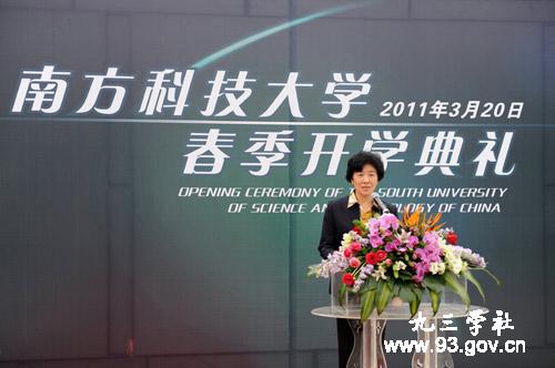3月20日下午,南方科技大学2011春季开学典礼在启动校区隆重举行。全国政协副主席、九三学社中央副主席王志珍出席典礼并致辞。