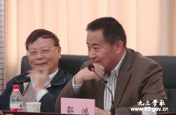 邵鸿在讲话中,对九三湖北省委的工作和郑楚光给予了高度评价。他指出,九三湖北省社员数量虽然不多,但社员质量非常高,聚集了一大批知名的、有代表性的专家学者。这些年来,九三湖北省委在各方面都取得了很好的成绩,尤其是参政议政工作成绩突出,为社中央输送了大量参政议政信息、提案,在社内外都产生了非常大的影响,而这一切成绩的取得与郑楚光同志的辛苦工作是分不开的。郑楚光同志具有很强的政治把握能力、高度的政治敏锐感,为九三事业的发展殚精竭虑,作出了重要贡献。同时,邵鸿殷切希望田玉科加强学习,尽快完成角色转换,继续突出优势做好社务工作,为九三湖北省委各项工作的开展再立新功。也希望在座的各位同志以此次届中调整为契机,切实做好有关准备,确保社中央换届工作圆满、成功。