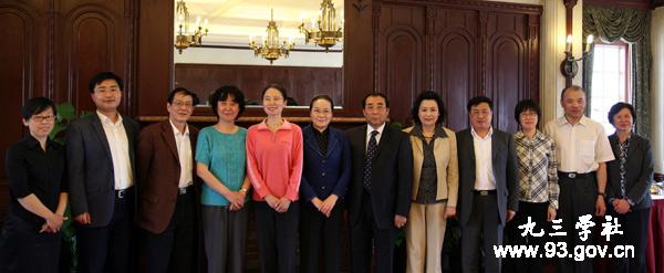 九三学社中央副主席丛斌(右六),九三学社上海市委主委、上海市副市长赵雯,中共上海市委统战部副部长吴捷(右四)等领导与报告团部分成员合影。