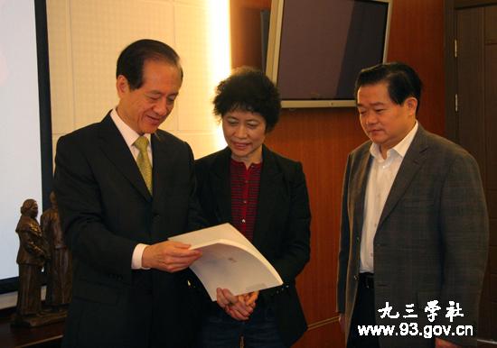 在建国62周年和辛亥革命100周年前夕,重庆市向九三学社中央赠送两组革命先贤雕塑。9月26日上午,在九三学社中央机关举行赠送仪式。全国人大常委会副委员长、九三学社中央主席韩启德,九三学社中央副主席丛斌出席仪式。重庆市政协主席邢元敏,中共重庆市委常委、统战部部长范照兵代表中共重庆市委市政府赠送雕塑。