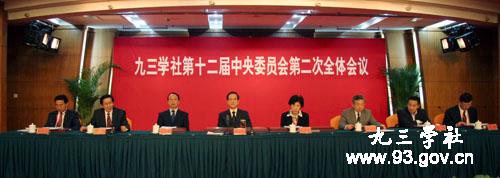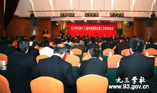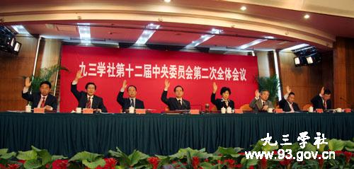 12月6日,九三学社第十二届中央委员会第二次全体会议圆满完成各项议程,在北京职工之家饭店胜利闭幕。会议审议通过了关于九三学社第十二届中央常务委员会2008年工作报告的决议和九三学社中央委员会工作规则,表决通过了九三学社中央监督委员会组成人员名单。全国人大常委会副委员长、九三学社中央主席韩启德作闭幕讲话。