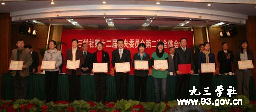 会上,各小组召集人汇报了本组讨论情况;向九三学社抗震救灾、为奥运会做贡献、政治交接学习教育活动、信息工作先进集体和先进个人代表颁了奖。