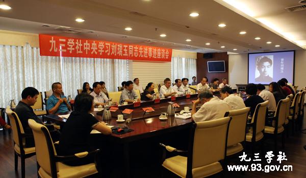 8月29日下午,九三学社中央召开学习刘瑞玉同志先进事迹座谈会。九三学社中央副主席邵鸿出席会议。九三学社中央副主席丛斌,中科院党组副书记方新出席会议并讲话。