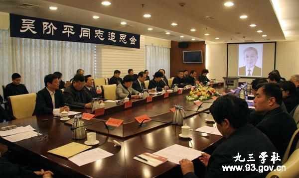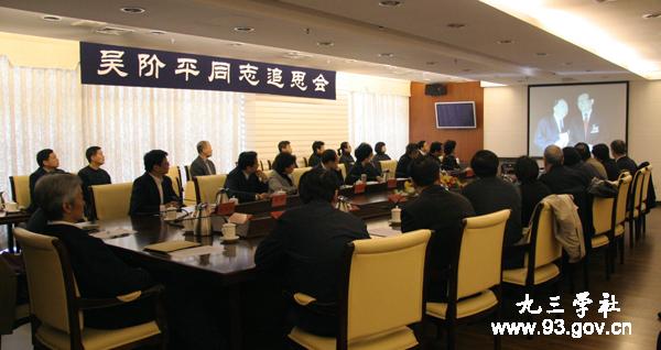 追思会由九三学社中央副主席邵鸿主持。九三学社中央副主席赖明、丛斌,九三学社中央原常务副主席陈抗甫、原副主席贺铿,中央统战部一局局长吴晓礼、副局长易玉娟,吴阶平同志的学生和亲属代表,以及九三学社中央机关工作人员等共40余人出席会议。