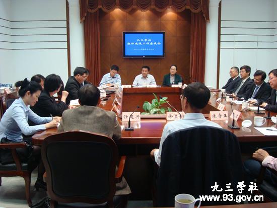 在九三学社上海组织成立65周年纪念日前夕,社上海市委召开组织建设工作座谈会,社中央副主席邵鸿出席并讲话。上海市副市长、社市委主委赵雯出席座谈会并致辞,社市委副主委郑祖康、程维明、陈义汉、黄鸣、敬忠良、周锋、钱锋、葛均波,秘书长沈洁及社上海部分地区、直属基层主委参加会议。座谈会由社市委副主委周锋主持。