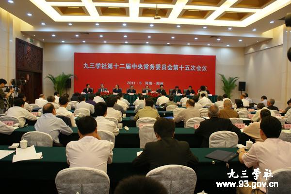 九三学社第十二届中央常务委员会第十五次会议5月6日至5月7日在郑州召开。本次常委会主要围绕“如何做好九三学社中央常委和省级组织主委,加强四个能力建设”的主题,进行工作体会和经验交流。全国人大常委会副委员长、九三学社中央主席韩启德出席会议并讲话。中共河南省委常委、秘书长刘春良出席开幕式并致辞。