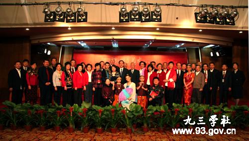 12月4日晚,冷空气的入侵使北京的气温聚降。呼啸的北风使路人步履匆匆。位于西长安街的中国职工之家饭店三层多功能厅却温暖如春、气氛热烈,不时传出歌声、琴声和爽朗的笑声。出席九三学社第十二届中央委员会第二次全体会议的全体委员正在这里欢集一堂,祝贺全会的召开,祝贺九三学社中央艺术团的正式成立。全国人大常委会副委员长、九三学社中央主席韩启德,全国政协副主席、九三学社中央副主席王志珍,九三学社中央常务副主席陈抗甫,九三学社中央副主席冯培恩、贺铿、邵鸿、张桃林、赖明出席晚会。