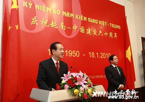 1月18日中午,越南驻华大使阮文诗在越南驻华大使馆举行纪念中越建交60周年招待会。全国人大常委会副委员长、九三学社中央主席韩启德出席并致辞。