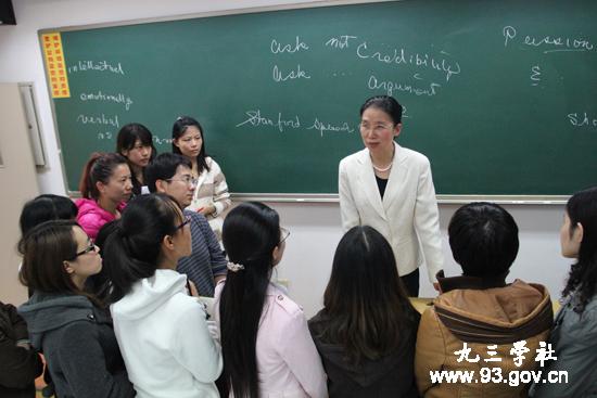 中国科学院研究生院语音教室,杨佳用她优美的语调、优美的手势、优美的笑容,向新入学的博士研究生讲授英语口语。同学们并不知道,眼前这位活跃、亲切、耐心、博学的教授,是一个什么也看不见的人。