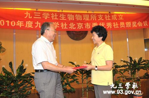 2011年9月16日下午,九三学社中国科学院新第九支社成立大会在中国科学院生物物理所蛋白质中心大楼9501会议室举行,会议还对获得社市委“创优争先”活动的优秀社员颁了奖。