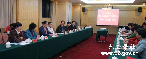 九三学社中央第十二届妇女工作委员会第一次全体会议12月5日晚在中国职工之家饭店举行。九三学社中央主席韩启德、副主席王志珍、邵鸿出席会议。