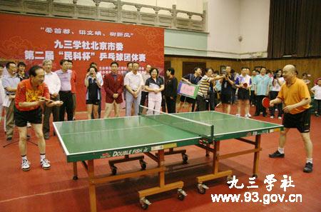 “打得漂亮!足足较量了10个回合!”“扣球,打他中路,有了!” 5月23日,坐落在北京大学未名湖畔的第一体育馆热闹非凡,由九三学社北京市各二级组织组成的18支代表队、百余名社员参加了由社市委举办的第二届“民科杯”乒乓球团体赛。