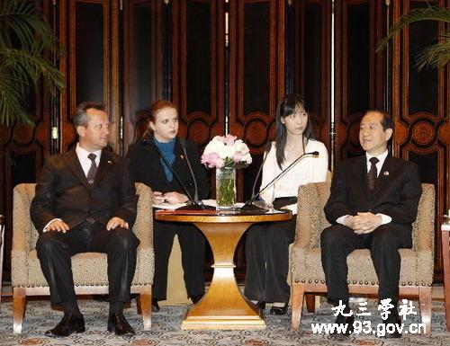 全国人大常委会副委员长、九三学社中央主席韩启德1日在上海集体会见了来华出席上海世博会开幕式的马其顿议长韦利亚诺夫斯基和欧洲议会欧中友好小组主席德瓦。