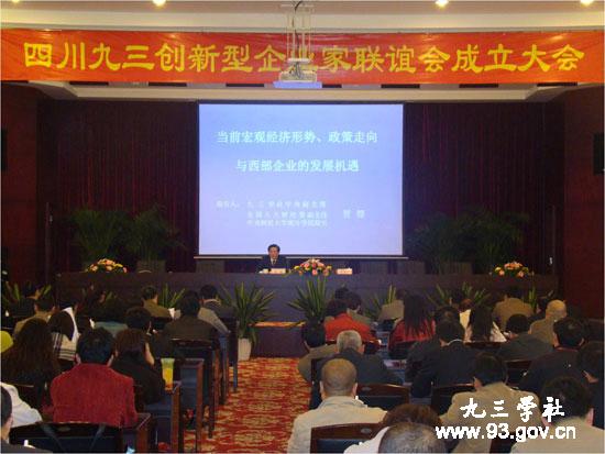 4月16日至17日,四川九三创新型企业家联谊会成立大会在成都举行。九三学社中央副主席贺铿到会表示祝贺,并作题为《当前宏观经济形势、政策走向与西部企业的发展机遇》的科学报告。