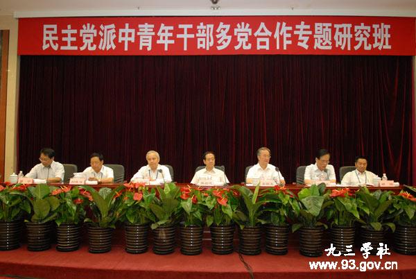 7月5日至12日,第三期民主党派中青年干部多党合作专题研究班在中央社会主义学院举办。全国人大常委会副委员长、九三学社中央主席韩启德出席开学典礼并做重要讲话。全国人大常委会副委员长、农工党中央主席桑国卫,致公党中央常务副主席王钦敏、九三学社中央副主席邵鸿及中央社院相关领导参加开学典礼。中央统战部副部长楼志豪主持开学典礼。