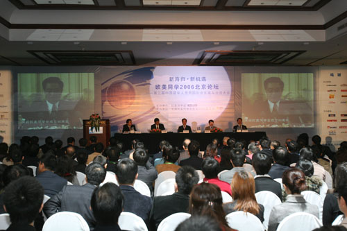 全国人大常委会副委员长、九三学社中央主席、欧美同学会会长韩启德10月28日在欧美同学会二〇〇六北京论坛上向中国留学生提出三点建议,认为他们应当为中国共产党和中国决策建言献策,为建设创新型国家贡献力量,同时参与民间外交,提升中国的国际地位。韩启德在论坛开幕式上的讲话中指出,在当前这一重要历史机遇期,留学人员应该积极行动起来,主动投身构建社会主义和谐社会的伟大实践。