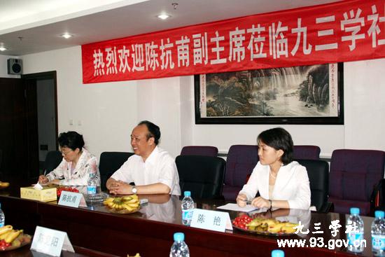 九三学社大连市委主委王永学对陈抗甫的到来表示热烈欢迎。九三学社大连市委副主委关宏志汇报了领导班子建设、组织发展、机关建设、参政议政、社会服务等情况。
