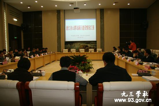 在3月24日上午召开的调研座谈会上,忻海平向调研组介绍了浙江舟山群岛新区规划建设的相关情况。市委政策研究室、市政府经济研究中心以及市发改委、市财政局等相关部门负责人参加了座谈。赖明副主席表示,新区规划目标明确,思路清晰,听后深感鼓舞,也很受启发。他说,海洋经济是今后中国经济发展的强力增长极,发展蓝色经济试验区,对于促进我国经济社会发展具有重要意义。舟山的海洋经济基础好、发展空间大,有很多鲜明的特点,在海洋经济方面取得的成绩,将为我国开发利用蓝色国土、转变发展模式、调整经济结构提供宝贵经验。他强调,浙江舟山群岛新区作为全国唯一以海洋经济为主题的新区,要体现经济形态的新、发展模式的新和功能定位的新。舟山群岛新区建设不仅要做大,更要做强、求变,要发展高附加值产业,发展产业上下流,做好产业外延,依靠科技、创新,提高资源利用率。赖明副主席表示,调研组将在认真梳理后向中央提出支持新区和国家海洋经济发展的意见和建议。忻海平代表中共舟山市委市政府向九三学社中央对舟山的支持和厚爱表示感谢。忻海平表示,调研组提出的意见和建议,对新区规划和今后的发展起了很好的指导作用。中共舟山市委、市政府将认真研究,作为参考。座谈会上,调研组成员还与舟山市相关部门就规划中的产业发展布局、资金投入和配套、资源利用、科技和创新等方面交换了意见。